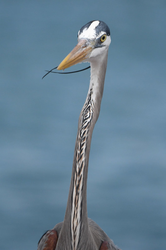 As I walked, Bewick’s Wrens and Spotted Towhees popped up regularly along the way. In one grassy flat area, I found a trio of Horned Larks. Here and there White-crowned Sparrows flitted from bush to bush. I spied a few loons and gulls and pelicans and cormorants along the coast and out in the water.