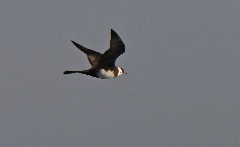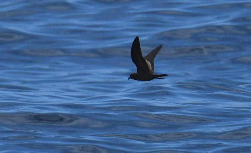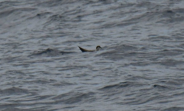 The seas in San Diego weren’t loaded with flocks of seabirds, but the trip was an astounding success for variety. After a bumpy exit out of Mission Bay, we headed to the Nine Mile Bank. On the way, I got my first three lifers of the eight I’d get on this trip: Long-tailed Jaeger, Craveri’s Murrelet, and Black Storm-Petrel. Long-tailed Jaegers are the most likely of our three jaegers to require being far off-shore to see. It breeds in the Arctic, and is found off California especially in August and September. True to form, we saw several jaegers during the day in dogfights with terns who had caught a fish. Craveri’s Murrelet is a small little bird that breeds in Mexico and then disperses into California waters during late summer and fall as long as the waters are warm. Their size and behavior (they mainly swim on the surface) make them easy to spot in calm seas. Due to the slightly choppy conditions we had, we didn’t see a lot of Craveri’s Murrelets. And when we did, they were usually flying away from the boat before we got close.
