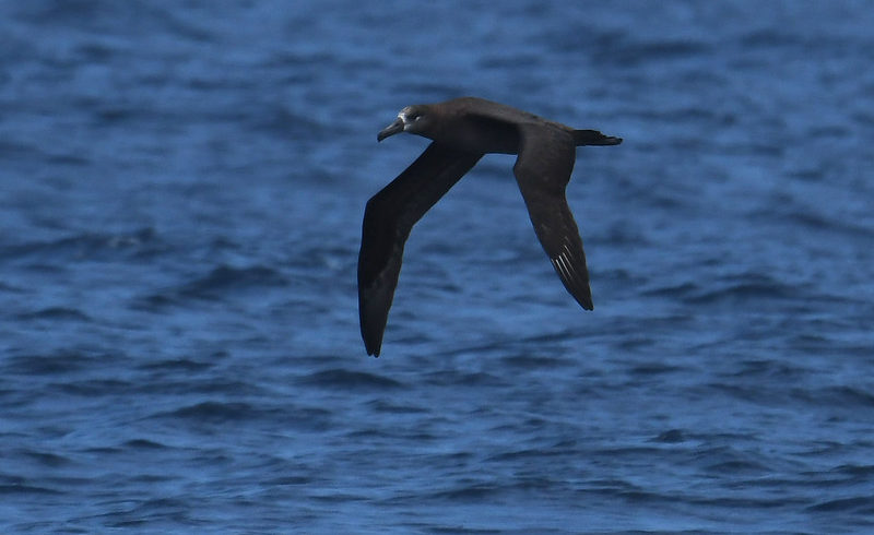 It took an hour and a half, by contrast, to lure in an albatross (maybe it was miles away when we put out the stink). A birder next to me asked “what’s that coming in low?” I looked through my binoculars and shouted “albatross!” A juvenile Black-footed Albatross then flew past the back of the boat. We saw at least two separate individuals – one with a white rump and another without a dark rump.