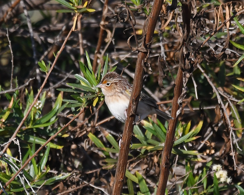 The second of my trio was one I’d been hoping to find. In my 2021 5MR recap post, I identified Grasshopper Sparrow as my #1 target for my 5MR life list. In that post, I wrote that “these secretive sparrows are undoubtedly present in my 5MR, probably every year.” In early November, I proved myself right. And the one I found was just where I thought it would be – the Ballona flatlands. Much of the Ballona ecological reserve, which is full of great habitat, is fenced off. Since you can’t walk through it, hoping to flush a Grasshopper Sparrow, you’ve got to walk its edges. One such edge is along the very beginnings of the 90 “Freeway” where it crosses Culver Boulevard. I say “freeway” because, at 3 miles long, it can be driven from end to end quicker than you can read this blog post. Anyhoo, you can walk along the northwest edge of Area C of the Ballona Ecological Reserve right where the 90 freeway starts. I’ve done it a few times, getting looks at Loggerhead Shrike and White-tailed Kite, but never a Grasshopper Sparrow. Until I did. Amongst a group of White-crowned Sparrows, I noticed a skulkier sparrow with more brownish coloring. I pished, and a Grasshopper Sparrow popped up into view, first in a bush and then along the fence. According to eBird, it was only the third Grasshopper Sparrow found in West LA Basin. the first was 2012, then 2017. With mine in 2022, it may mean the next one won’t be found until 2027.