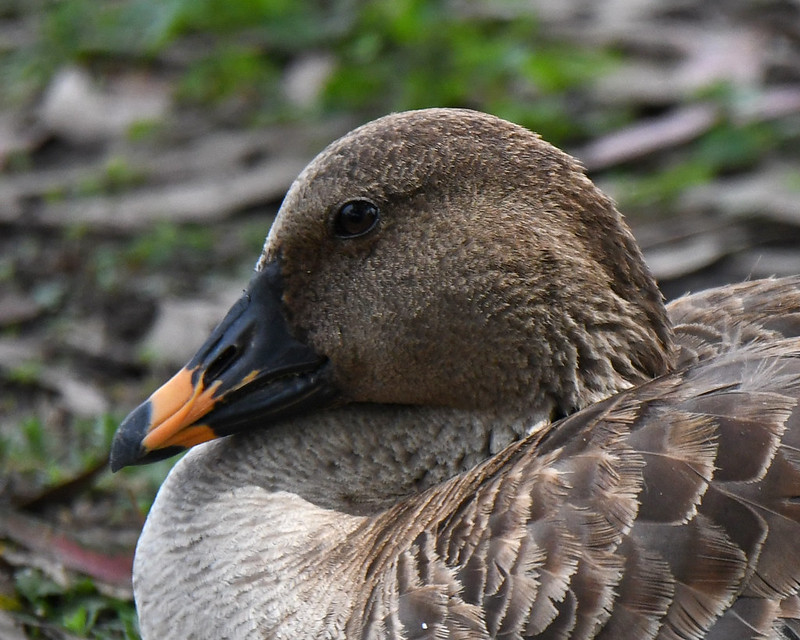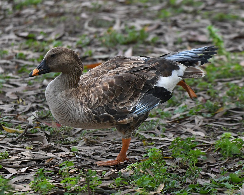 The next day, ubiquitous LA birder Chris Dean re-found the Tundra Bean-Goose 60 miles due south of Apollo Park, in South Los Angeles. It was hanging around some Canada Geese and other creatively-jowled fowl at Earvin Magic Johnson Park in Willowbrook. After initial questions about whether this might’ve been a second Tundra Bean-Goose, Occam’s Razor won out. Apparently the orange markings on the bill were matched with photos of the bird from Apollo Park.