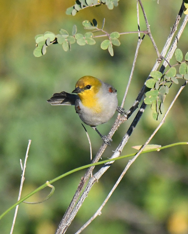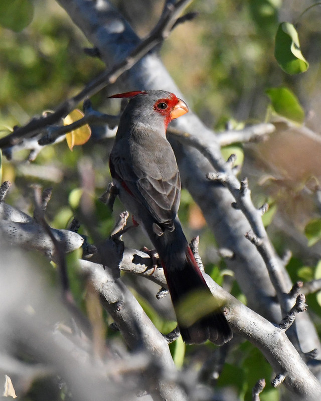 In neighborhood walks throughout the week, I also saw lots of desert specialties. Gilded Flickers and Gila Woodpeckers were noisy residents on the little farm. White-winged Doves and Cactus Wren moved around all day long. A Scott’s Oriole sang every morning, and a Zone-tailed Hawk circled above every afternoon. Verdin and California Quail made noises from inside bushes. At one productive stretch of brush, I had point-blank views of Ladder-backed Woodpecker and Pyrrholuxia. The Pyrrholuxia, aka the Desert Cardinal, is a birder’s bird. It’s got a crazy name, a restricted habitat, and subtly striking plumage. It’s like an artist took an all-gray bird and delicately added some red highlights with a few elegant brush strokes.