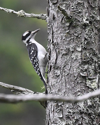 Wherever you do find bushes, you’re likely to find a Gray Catbird or two (and a family of Song Sparrows). The catbirds are fairly loud and conspicuous, so getting a good shot of one isn’t that much of a problem. Hidden in this photo is the rusty-red undertail. The Hairy Woodpecker below was part of a 3-bird group that was moving through the forest very loudly. The White-throated Sparrow was quiet while I saw it, but you frequently hear their “oh-sweet-Canada” song from far off. Cool story: a new White-throated Sparrow song has emerged in the 21sy century and is spreading across the continent.