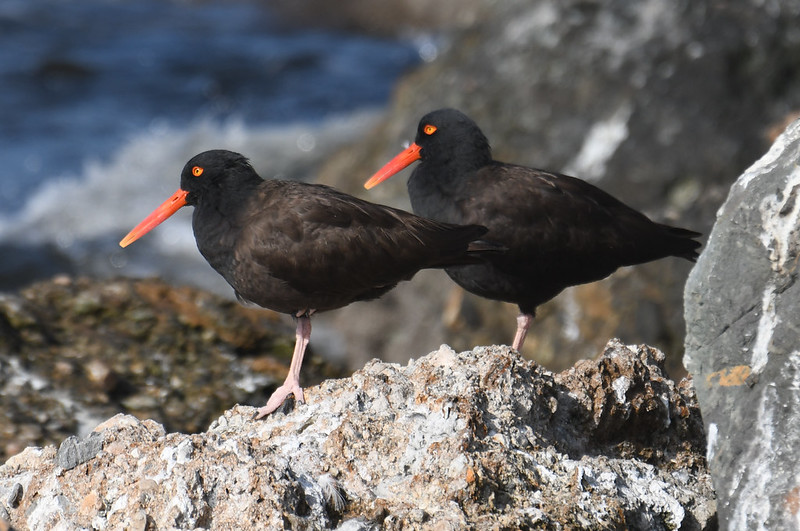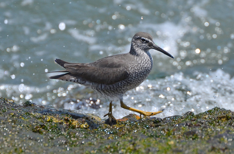 While I can’t discern anything special about the rocks on one side of a particular jetty or the other, in my experience, the jetty birds prefer the rocks along the creek (that is, the north side of jetty #3 and south side of jetty #2). Between the two, the longer middle jetty gets more birds, and most of them are on the west end of the jetty, after the flat walking surface ends. The sunlight (such as it as) is better in the mornings, when it’ll be at your back (but it’s usually obscured by the marine layer). Visibility in the afternoon, especially during the summer months, is tough with the setting sun behind the breakwater.