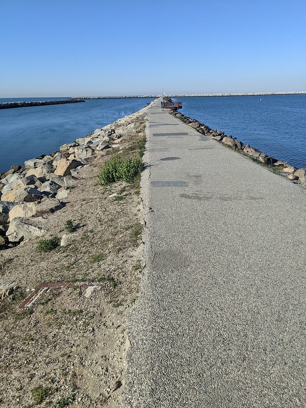 This is one of my favorite places to visit in my entire 5-mile radius. For starters, it’s got great birds. All year long (except maybe the doldrums of June), the jetties and breakwater offer excellent birding and the potential for rarities. In addition to great birds, I’ve seen green sea turtles and sea lions and whales from the jetties (a gray whale was swimming 10 feet off jetty #3 one day!). And there’s always multiple kinds of watercraft about–from fishing boats and pleasure yachts to jet skis and college rowing crews. The jetties have their share of regular fishermen, and get more casual foot traffic on the weekends. The fisherman don’t seem to bother the birds all that much, but too many strollers tends to scare the birds off.