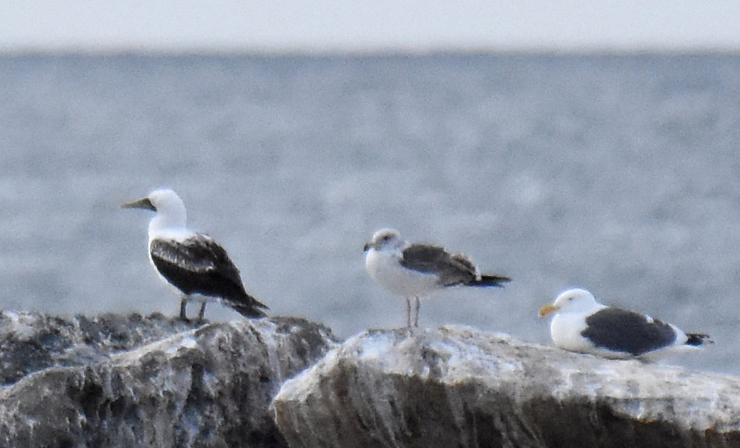 The approximately 2,000 foot wide breakwater is close enough to the jetties to ID birds with binoculars. It’s often dominated by cormorants. The majority are Brandt’s Cormorants, with some Double-crested and Pelagic mixed in. If there isn’t a feeding frenzy going on nearby, you might see up to 5,000 cormorants standing on the breakwater. If the wind is blowing the surf onto the breakwater, the cormorants move en masse onto the jetties, and a slow approach will allow for some excellent close-ups. Brown pelicans, gulls, pigeons, and Snowy Egret make up the rest of the birds you’re likely to spot on the breakwater. With patience and luck, you can sometimes pick some rarities out on the breakwater. In September 2013, Blue-footed Boobies showed up. As many a 9 were reported, and the last one stayed until December. In February 2020, a Masked Booby made the breakwater home for 2 weeks. A Common Murre shows up every few years.
