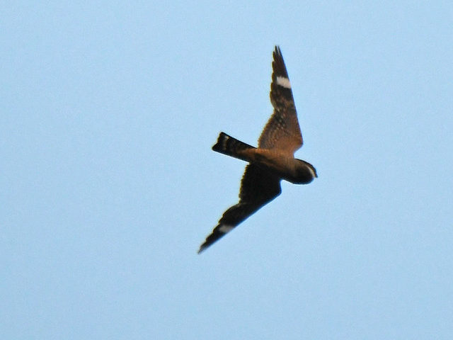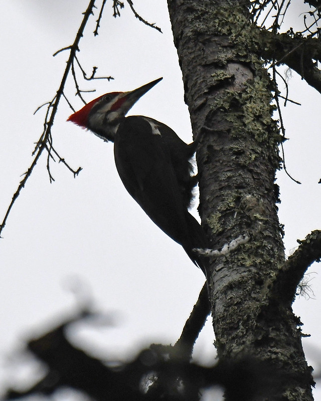 Of course, a trip to Maine is also good for unexpected sightings. This year, I added a half dozen birds to my Maine life list. An Indigo Bunting popped out of some bushes one day, and left before I could snap a photo. A Bonaparte’s Gull was hanging out at low tide in a cove while some Common Mergansers swam past. One evening, a Common Nighthawk danced high above a grassy field. On our drive back to Boston airport, we stopped at a Henslow’s Sparrow stakeout. And a lunch break in Portland got me a Northern Mockingbird at almost the northeastern edge of its range. In addition, I got great looks at birds I don’t see every time I come. They included Black-and-white Warbler, Magnolia Warbler, Swamp Sparrow, Red Crossbill, and Pileated Woodpecker, who I tracked down thanks to its impressively loud drumming.