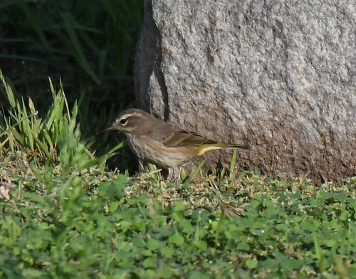 The Wood Warbler wasn’t the only good bird seen that morning. While we all waited and checked out every little thing that moved in the trees, a couple of rare and unusual birds were seen: Townsend’s Solitaire and Plumbeous Vireo. While those of us in the cemetery walked around it, we found some more: Clay-colored Sparrow and Palm Warbler. It was a classic illustration of the Patagonia Picnic Table effect: a rare bird brings birders, and more birders mean more discovered rarities. For those who love exotics, the cemetery also had Pin-tailed Whydahs and Yellow-chevroned Parakeets and Scaly-breasted Munias moving around.