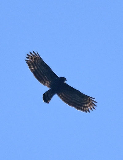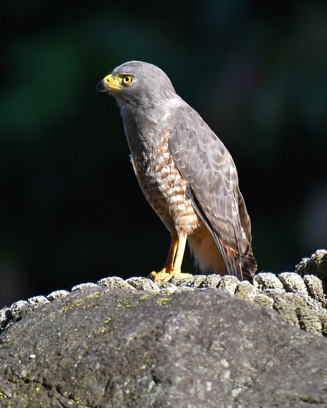 I came to suspect that the Roadside Hawks I kept seeing were actually a single bird that resided on the property. On multiple morning walks, I found it standing on the same rock. Each time, at first glance, I thought the rope it was standing on was a snake. Broad-winged Hawks were more often hidden in the branches of forest-edge trees.