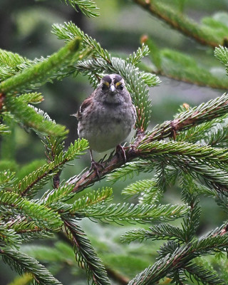 Wherever you do find bushes, you’re likely to find a Gray Catbird or two (and a family of Song Sparrows). The catbirds are fairly loud and conspicuous, so getting a good shot of one isn’t that much of a problem. Hidden in this photo is the rusty-red undertail. The Hairy Woodpecker below was part of a 3-bird group that was moving through the forest very loudly. The White-throated Sparrow was quiet while I saw it, but you frequently hear their “oh-sweet-Canada” song from far off. Cool story: a new White-throated Sparrow song has emerged in the 21sy century and is spreading across the continent.