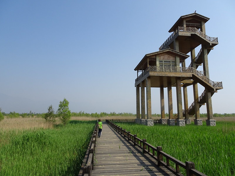 The last of our adventures that involved a bunch of birds was a day trip out to Yeyahu National Wetland Park (aka Wild Duck Lake). It’s a big wetland just over an hour’s drive from Beijing, past the Great Wall. Through the help of someone at the university, we hired a driver to take us out there early in the morning (after stopping at the amazing dumpling place, as we did almost every morning). Our driver didn’t speak any English, which created a couple of challenges later in the day. But he took us where we wanted to go, and waited for us while we wandered around. We arrived at Yeyahu an hour before it opened (which was news to us). No matter, a guy at the entrance allowed us to buy tickets and enter.