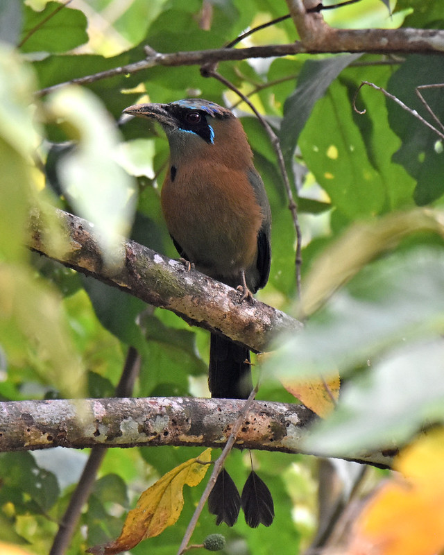 Like trogons, motmots are really good at not being seen despite their size and coloring. But one motmot habit makes them easier to spot than trogons. They have a tendency to wag their long tail feathers back-and-forth. That’s how I spotted the Lesson’s Motmot pictured above. It was perched deep inside a tree, and I would have walked right past without noticing it if it’s tail wasn’t moving like a pendulum. Check out the link for a video of a motmot wagging its tail.