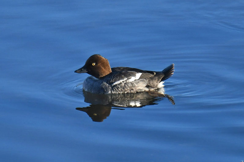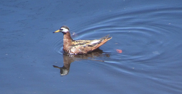 This portion of the creek is pretty good for water birds and shorebirds. The water birds (ducks, loons, and grebes mainly) can be found any time of day, moving up and down the creek. Numbers are highest in the winter. Buffleheads dominate, with a smaller number of American Wigeon (who prefer the lagoon to the creek), Lesser Scaup, and Green-winged Teal (more likely the further up the creek you go) usually present all winter, too. Pacific, Common, and Red-throated Loons will sometimes, usually singly, swim up and down the creek. Eared and Horned Grebes tend to stay downstream of the Pacific Avenue bridge. The Surf Scoters that mass in big numbers off Dockweiler Beach during winter will sometimes wander up the creek a bit. Brant are rare. Most winters a Common Goldeneye or two makes an appearance. Less frequently a Long-tailed Duck shows up. A few Red-necked Phalaropes are seen in fall migration (they prefer the section of the creek near Centinela Ave.), and a breeding-plumaged Red Phalarope hung out for a couple of days one May. Mallards and Gadwall hang around all-year long.