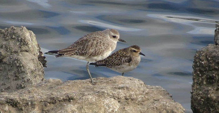 Black-bellied Plovers and Willets roost in numbers, with often more than 100 of each. Marbled Godwit can be found year-round as well. Whimbrel pass through for migration, with a few staying all winter. A Pacific Golden-Plover has been present for 8 winters running (as of fall 2025). While not reliably found on any given trip to the creek, each winter, Dunlin and Red Knot can often be found on the lower creek,