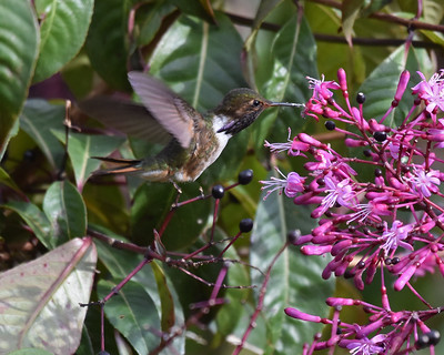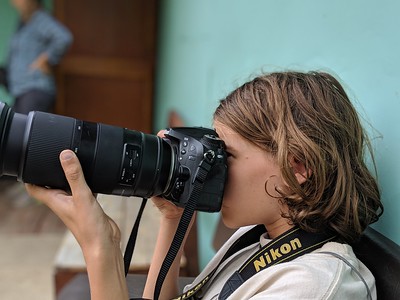 This being Costa Rica, there were, of course, hummingbirds. We saw five kinds at the feeders and buzzing around: Scintillant, Talamanca, and Volcano Hummingbird, plus White-throated Mountain-gem and Lesser Violetear. The birds were so plentiful and easy to spot that even the boys got into the photography action.