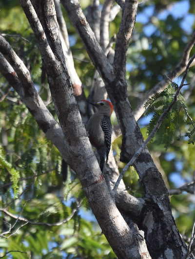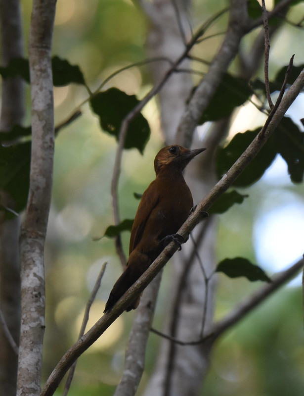 Eventually, the ticket man came down the trail and we moved on. The trail ends at a big lagoon. On the shore is another observation tower (it was closed because of the wind, or maybe because it was after 4:00). We didn’t see any birds on the water, or explore the shore. Since the trail gate was now closed, we walked back down the promised dirt road. There was a patch of good activity here. I picked up three lifers on the walk: Smoky-brown Woodpecker, Orange Oriole, and my only certain Yucatan Flycatcher sighting of the trip. We stopped at the Oxxo along the highway for cold drinks and snacks before hopping back in the car.